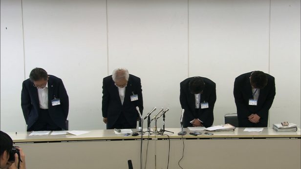 「申し訳ありませんでした」。並んで頭を下げる。土下座する。そんな映像が続々と映し出される。ペコリ、ペコリと謝罪ドミノ、そして辞職ドミノ。