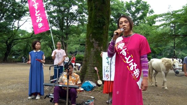 安富の行脚風景の合間には、他候補者の街頭演説風景や、それらをフォローし、盛り上げるカリスマ・山本太郎の水際立った応援演説が挿まる。敵対する丸川珠代候補などの姿もとらえられる。