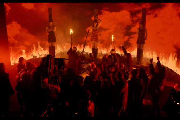 求心力を欠いたまま、撮影本番。磔にされたシャルロット。燃え盛る炎。撮影監督がカメラを構える。ヴェルディの「レクイエム」が響き渡るが、ベアトリスもシャルロットも、いまひとつ盛り上がらない。