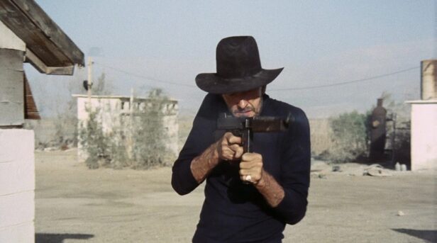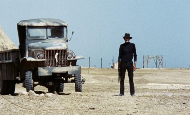ギラギラと照りつける太陽、舞い上がる砂埃、喚きながら走る狂女、銃撃一発で吹き飛ぶ車……。眩暈(めまい)を催すイメージの連鎖が、見る者をシュールな異世界へと誘う。
