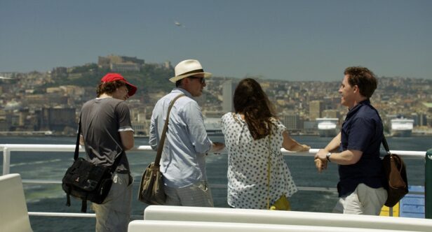 中盤まで、お楽しみ満載のイタリア旅行に浮き立つ男たちの、はしゃいだ感じが画面にあふれる。料理が運ばれてくれば「グラッツィエ!」、美味に舌鼓を打っては「ラブリー!」。若い女性とのロマンスなどもあり、見ているこっちまでウキウキした気分にさせられる。