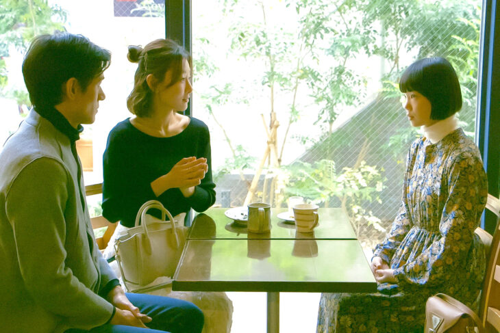 正面から2ショットで二人をとらえたカメラは、そんな芽衣子の微妙な表情の変化を見逃さない。やがて、タクシーがつぐみを自宅前で降ろすと、芽衣子はタクシーをUターンさせる。